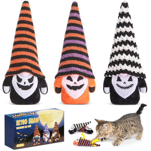 Retro Shaw Halloween Cat Toys, Crinkle Catnip Toys for Indoor Kitten Kitty Kicker Chew Tossing, Safe Teeth Cleaning Toy for All Breeds - 3Pcs